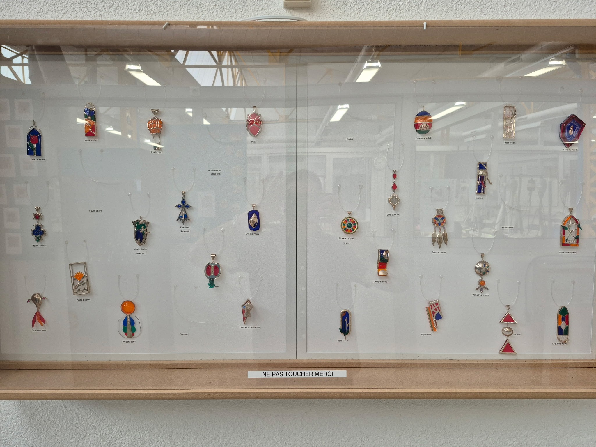 Les pièces de ce projet ont été créées dans le cadre d’un concours organisé par le Rotary Club du Saint Amandois. Les élèves devaient réaliser des pendentifs sur le thème du vitrail en utilisant un maximum de cinq couleurs, en intégrant des éléments en plexiglas et en jouant sur la transparence pour mettre en valeur le bijou. Chaque élève devait, dans un premier temps, fournir un dessin de son projet, le mettre en couleur à la gouache, puis passer à la phase de réalisation. Chaque pièce est unique.